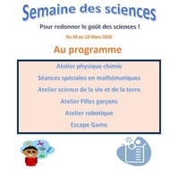 Une Semaine des Sciences sera organisée au collège à la rentrée du lundi 09 au vendredi 13 Mars (...)